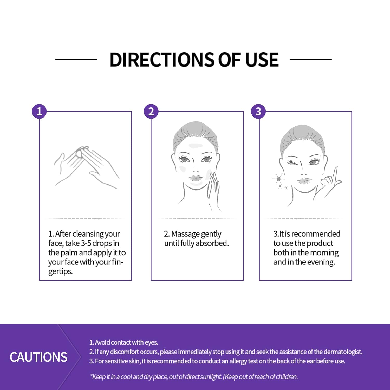 • 【Directions】: Apply in the evening on clean, dry skin. Apply 3-5 drops to face. Use sunscreen daily, as retinol increases sun sensitivity. Increasing skin cell turnover rate, with just 1-2 applications per day for a noticeable difference in your skin.