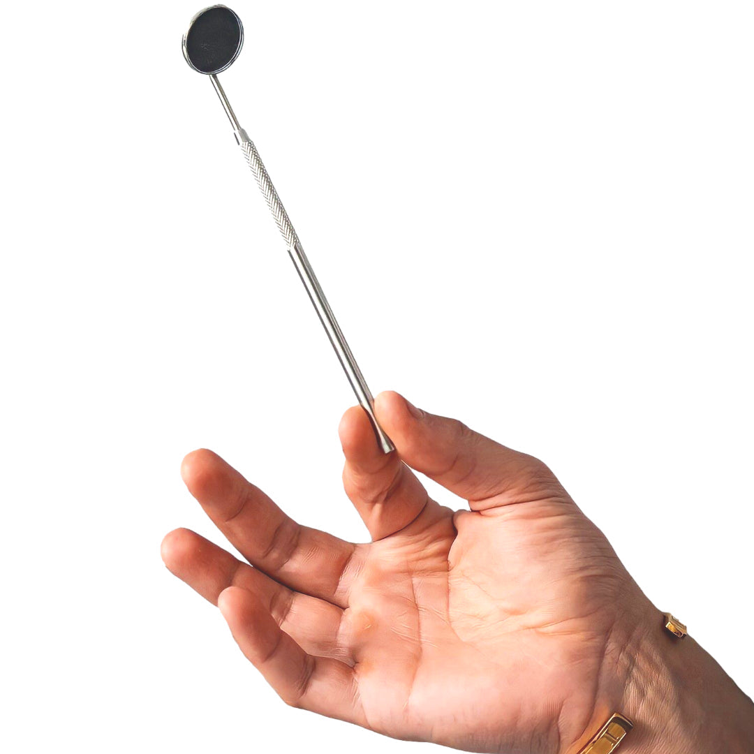 The mirror of 2.2 cm in diameter is curved : ideal for an inspection in all corners of the mouth
